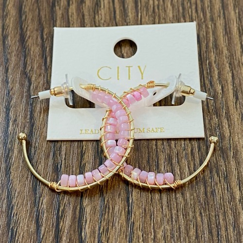 Purple and Grey Beaded Hoop Earrings