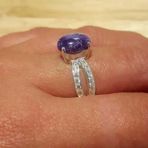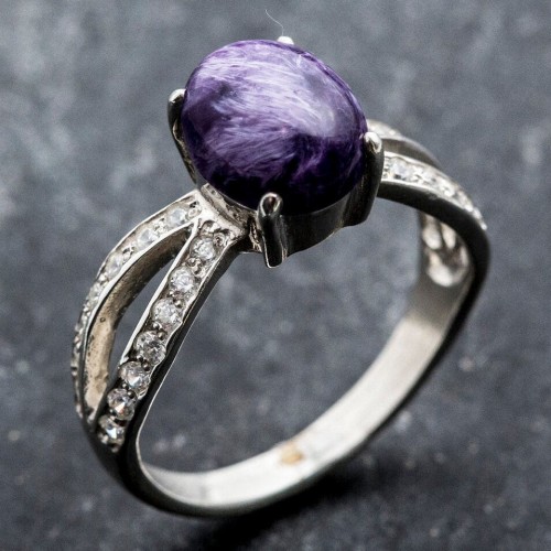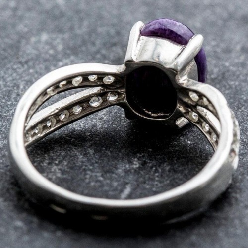 Purple Vintage Ring set with Natural Charoite in a cabochon cut & deep purple color, at size 10x8mm (3 Cts) from the Baltic Sea.