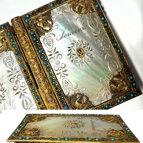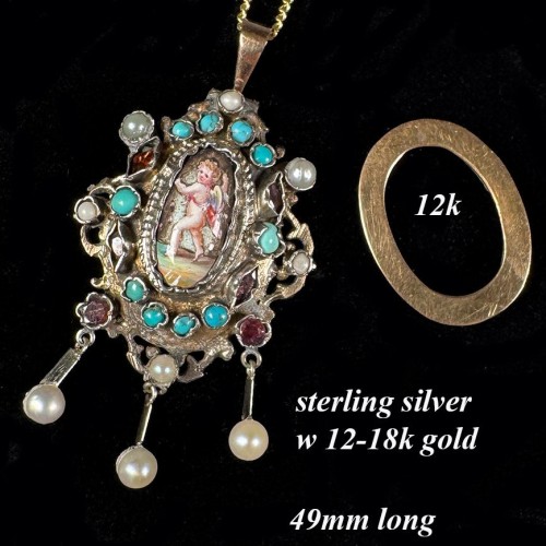 RARE 18th Century French 18k Gold and Silver Pendant, Kiln-fired Enamel Plaque, Gems, Pearls Locket