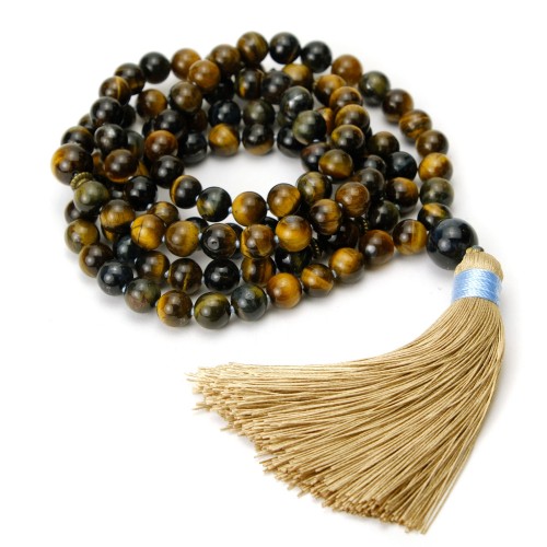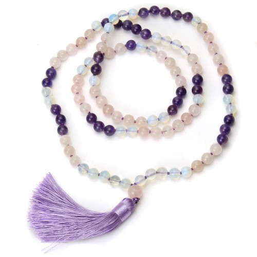 - Rose Quartz, Opalite and Amethyst 8mm Knotted Mala with Silk Tassel