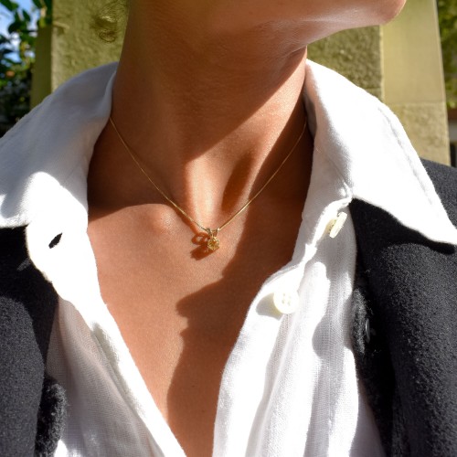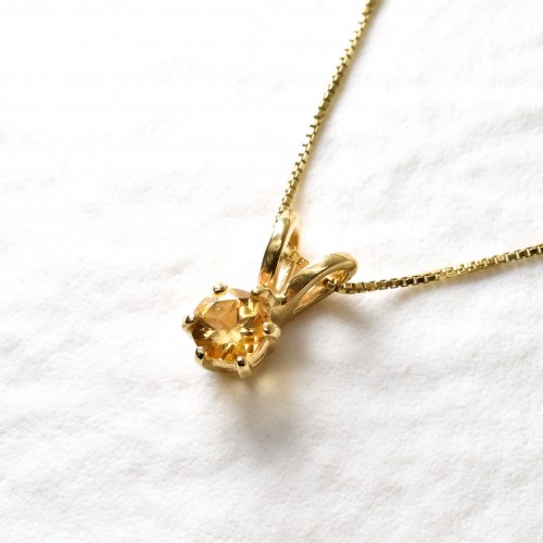 Round Citrine Gold Necklace – Natural Citrine Pendant – November Birthstone Necklace