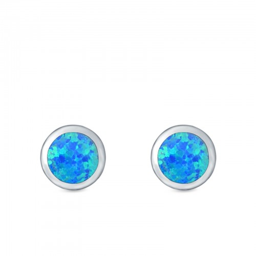 Round Stud Earrings Lab Created Blue Opal 925 Sterling Silver (7.5mm)