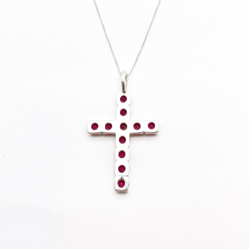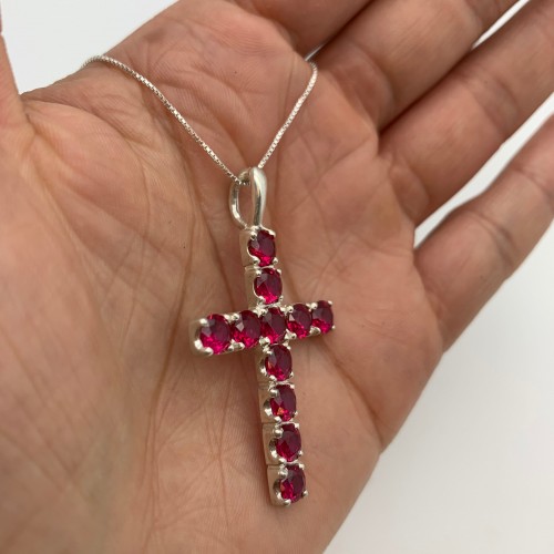 Ruby Cross Pendant set with Created Ruby in a flawless clarity & bright red color, at 5mm each (5 Cts all).