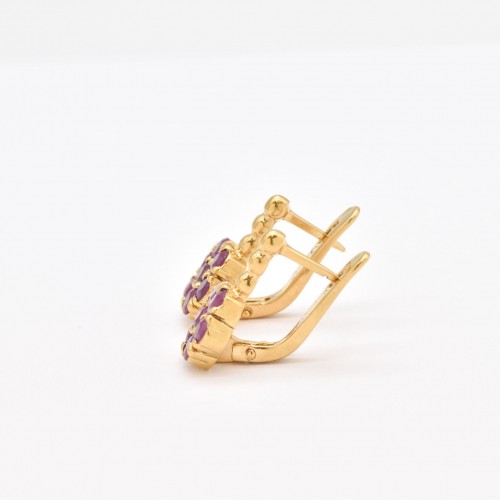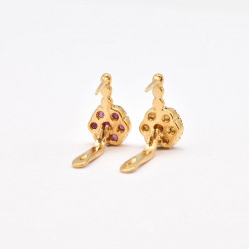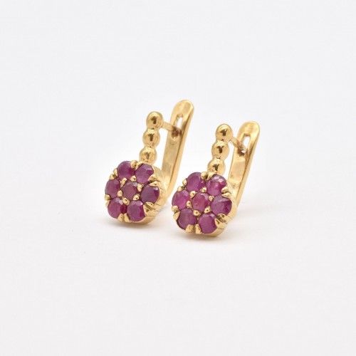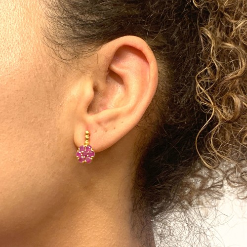 Ruby Gold Earrings set with Natural Ruby in a diamond cut & natural red color, at size 3mm each (2 Cts a pair) from Burma.