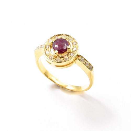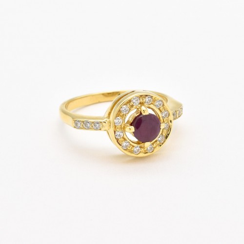 Ruby Gold Ring set with Natural Ruby in a diamond cut & natural red color, at size 5mm (0.6 Ct) from Brazil.