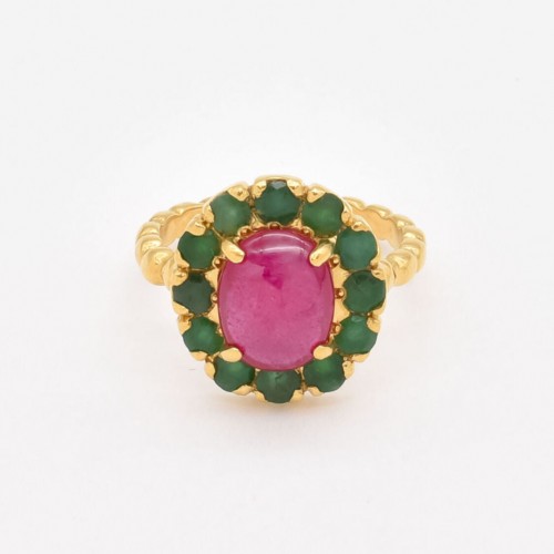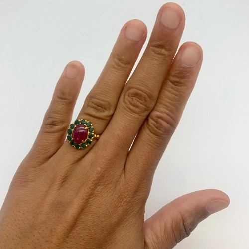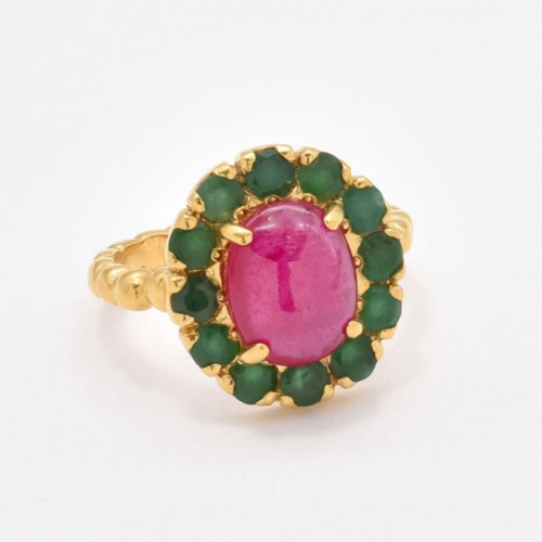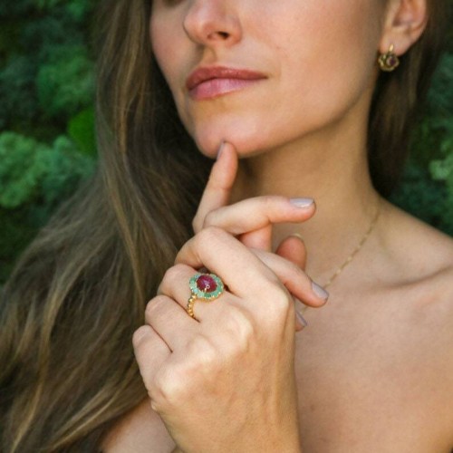 Ruby Gold Ring – Victorian Ring, Genuine Ruby Ring, Gold Bubble Band