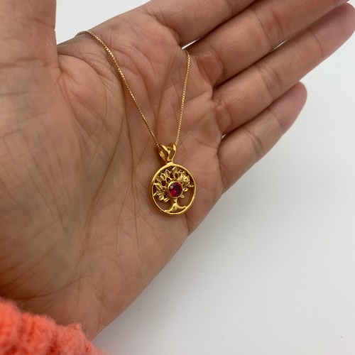 Ruby Tree of Life Pendant – Gold Tree of Life Necklace, July Birthstone Necklace