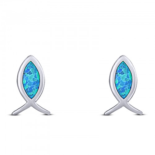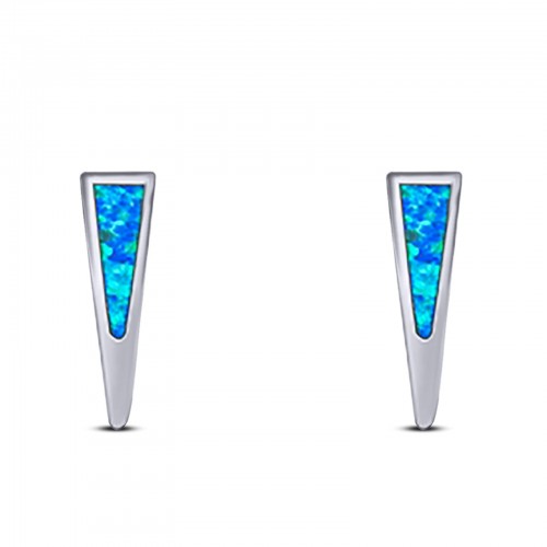 Sail Boat Stud Earring Created Blue Opal Solid 925 Sterling Silver (9mm)