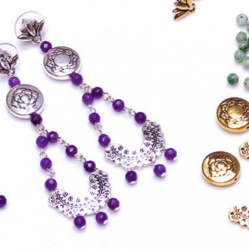 In this video, you will see an overview of the Strength and Beauty Collection by TierraCast. These small, finely detailed charms and buttons feature some new symbols including the Eye of Horus, Eye of Providence, recovery, pentagram, and a beaded bezel button that fits Austrian crystal SS34 flatback crystals.