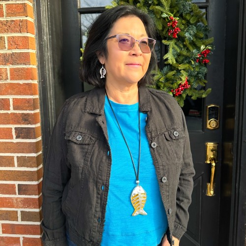 Silver and Mustard Fish Necklace and Earring Set