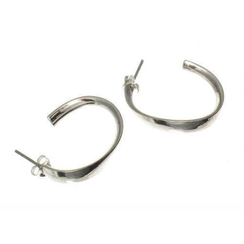 Slightly Twisted Hoop Sterling Silver Earrings with Post