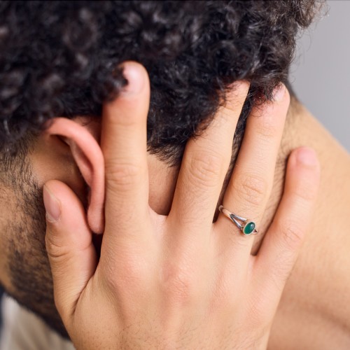 - Design: Der grüne Onyx ist oval geschliffen und in einem feinen 925 Sterling Silber gefasst, was einen edlen und dennoch minimalistischen Look verleiht.
