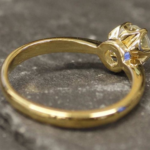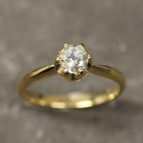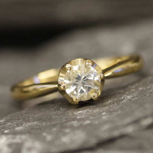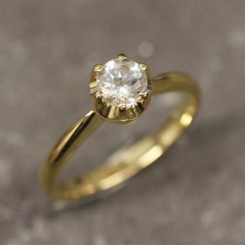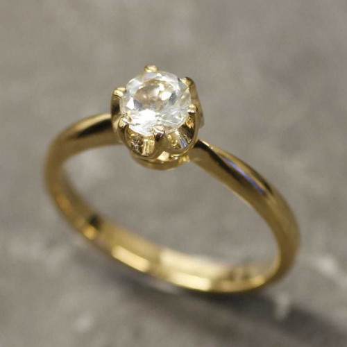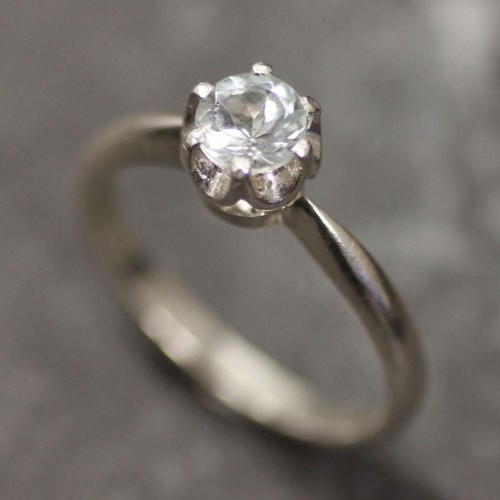 Solitaire Aquamarine Gold Ring set with Natural Aquamarine in a perfect diamond cut & pale blue color, at size 5mm (0.6 Ct), from Brazil.