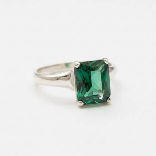 Square Emerald Ring – Christmas Gift For Her – Sterling Silver Emerald Birthstone Ring