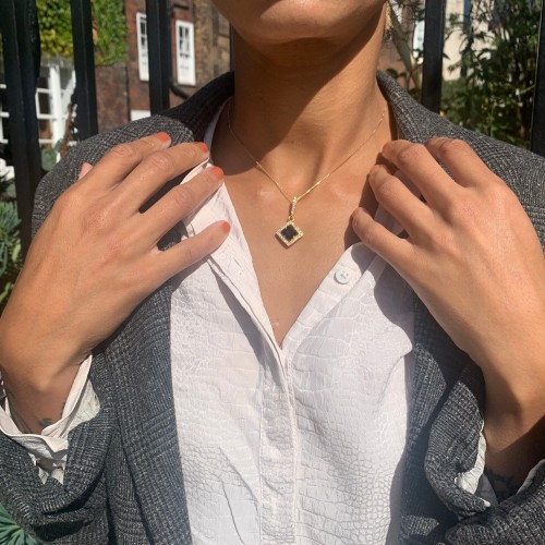 Square Onyx Pendant set with Natural Onyx in a top grade & natural stunning black color, at 8x8mm (3 Cts) from Europe with small CZ Diamonds.
