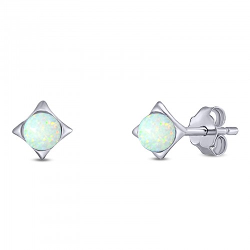 Square Round Created White Opal Solid 925 Sterling Silver (4.6mm)