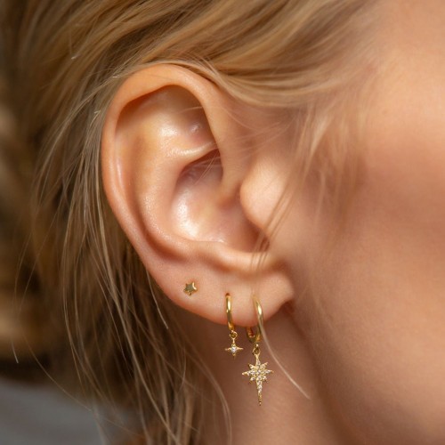 14K Gold huggie hoop earrings with a small Pave Star Flare accent that hug your ear perfectly. Perfect to create your celestial ear stack