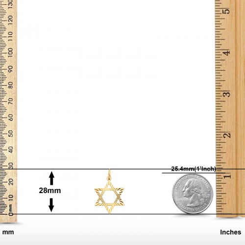 Star of David Charm Pendant 14K Real Yellow Gold 25mmX22mm 1.8grams