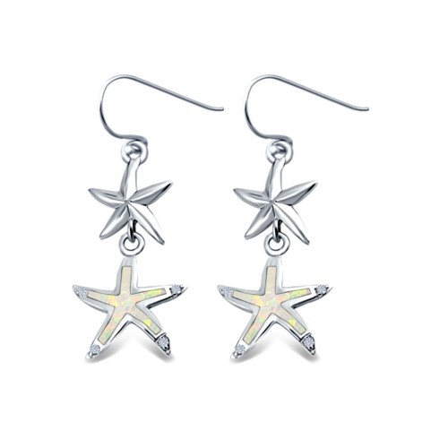 Starfish Drop Dangle Earrings Lab Created White Opal 925 Sterling Silver(18mm)