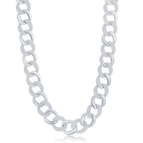 Sterling Silver 32mm Paperclip CZ Open Hoop Earrings