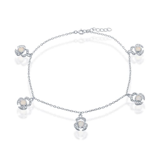 Sterling Silver Blue Inlay Opal Turtle Anklet