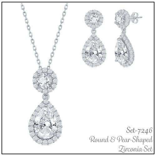 Sterling Silver Coushion-Cut CZ with Halo Necklace and Earrings Set