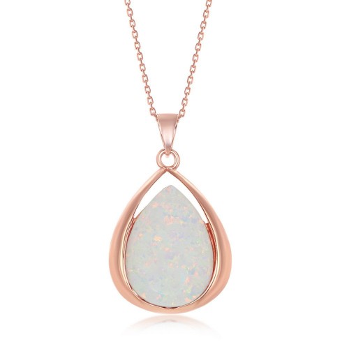 Sterling Silver Pear-shaped White Opal Pendant – Rose Gold Plated