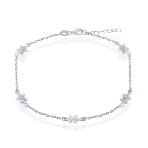 Sterling Silver Crescent Moon Anklet – Abalone