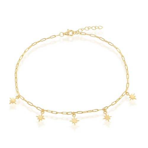 Sterling Silver North Star Charms Paperclip Anklet – Gold Plated
