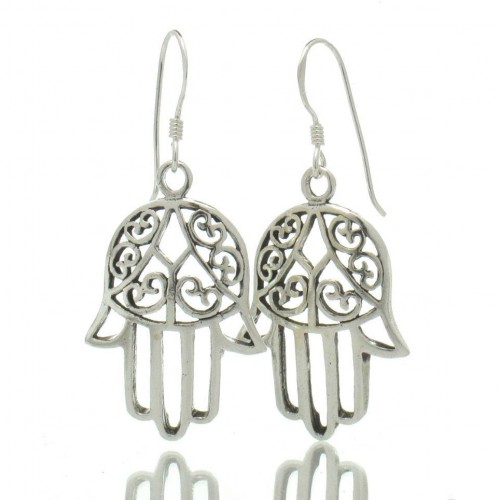Sterling Silver Filigree Hamsa Earrings