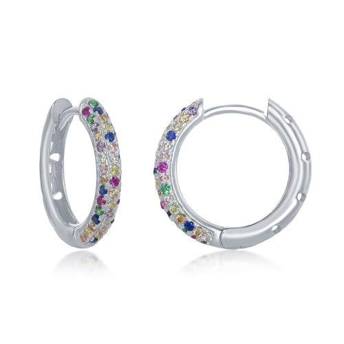 Sterling Silver Half Center Channel Set Rainbow CZ Hoop Earrings