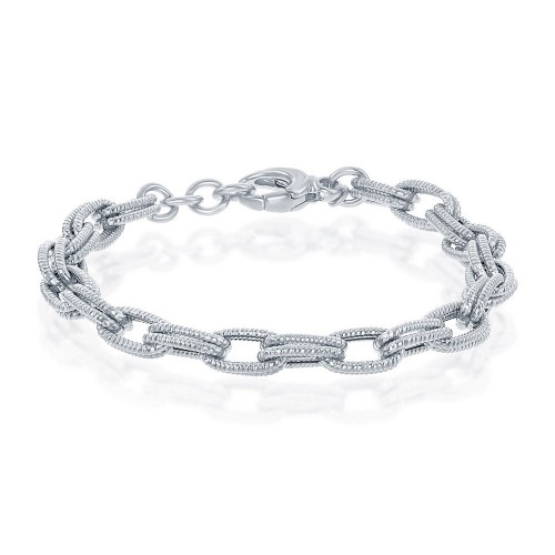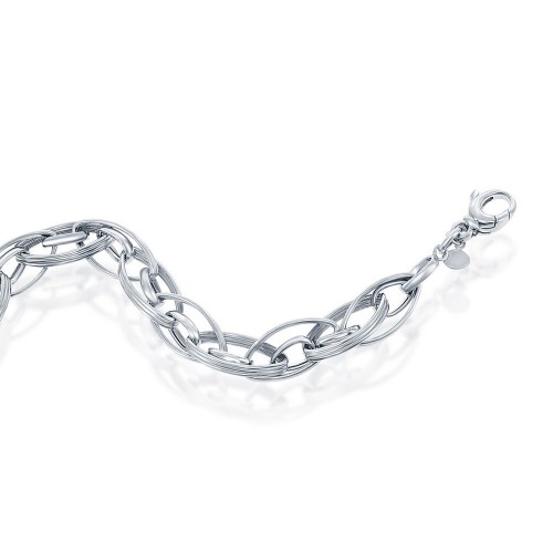 Sterling Silver Lined Marquise Shaped Multi-Linked Bracelet, MADE IN ITALY