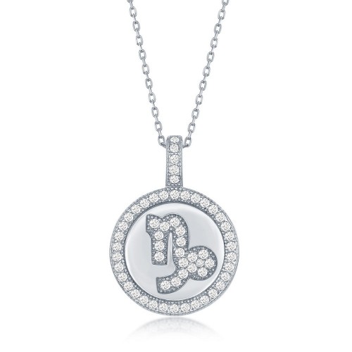 Sterling Silver Micro Pave Libra Zodiac Disc Pendant W/ Chain