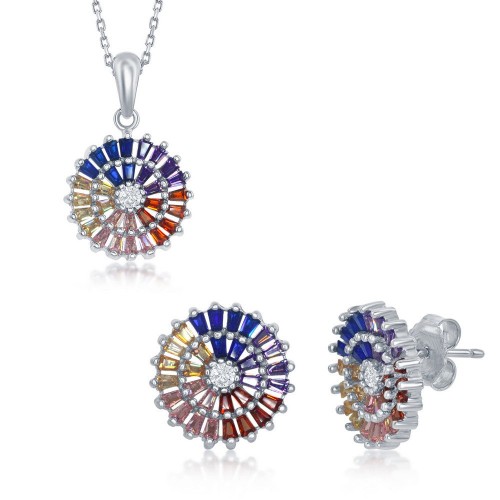 Sterling Silver Multi-Color Marquise CZ with 6 Prong Clear CZ Bracelet