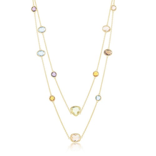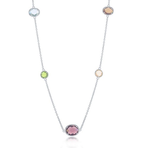 Sterling Silver Multi-Shaped Multi-Color CZ Long Necklace