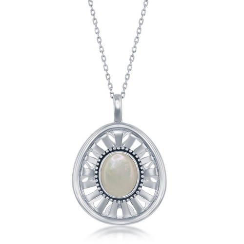 Sterling Silver Oval Turquoise Open Desigsned Back Oxidized Pendant