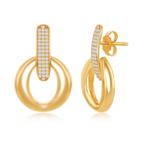 Sterling Silver Polished Door-Knocker Pave Earrings – Rose Gold Plated