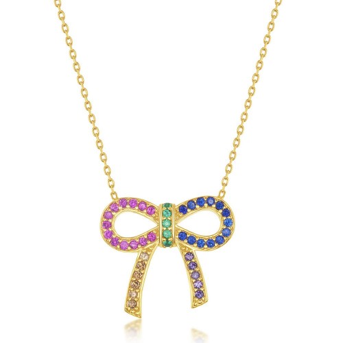 Sterling Silver Rainbow CZ Bow knot Necklace