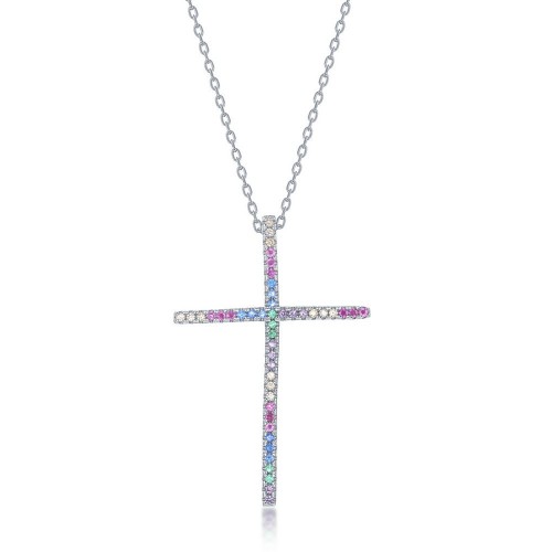 Sterling Silver Rainbow CZ Evil Eye Necklace