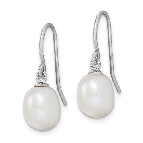 Sterling Silver Rhodium-plated 8- White Teardrop Freshwater Cultured Pearl Dangle Earrings 9mm