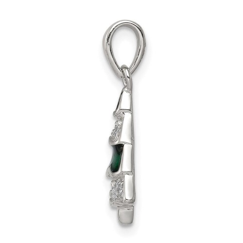 Sterling Silver Rhodium-plated CZ and Enameled Christmas Tree Pendant