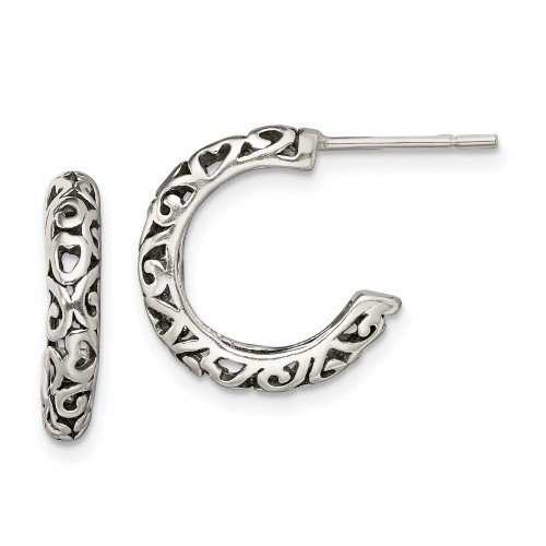 14k White Gold Engravable 23x Solid Dangle Heart Charm and Solid Polished Link Bracelet 7in 17mm
