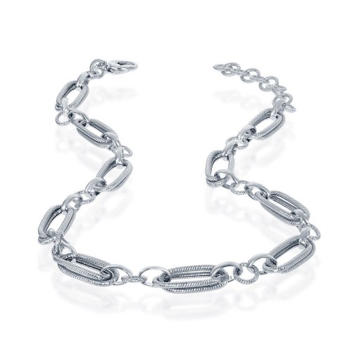 Sterling Silver Rope Designed Oval and Polished Circle Linked Necklace, MADE IN ITALY
