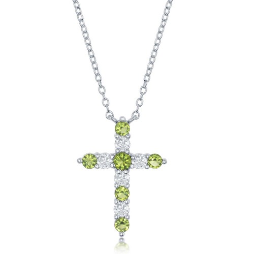 Sterling Silver Ruby CZ July Birthstone Cross Necklace