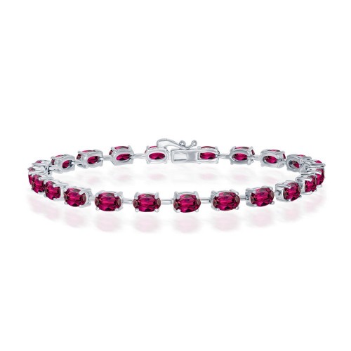 Sterling Silver Smokey Oval Gemstone Link Tennis Bracelet