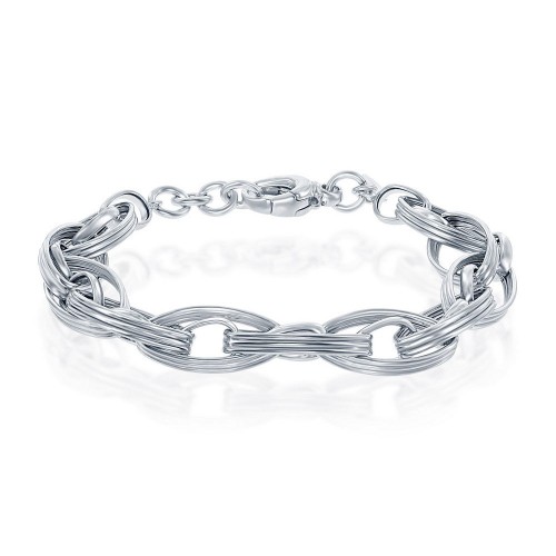 Sterling Silver Stripped Multi-Oval Linked Bracelet, MADE IN ITALY