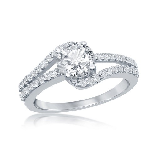 Sterling Silver Three-Stone Half Micro Pave Band Engagement Ring Set