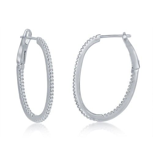 Sterling Silver Ultra-Thin 30mm Hoop CZ Earrings – Pear-Shaped