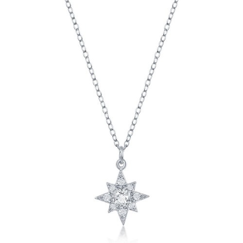 Sterling Silver White CZ and Emerald CZ Baguette Circle Necklace