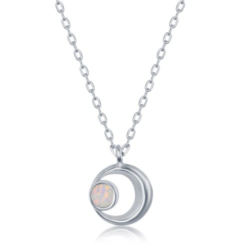 Sterling Silver Whtie Inlay Opal Cross Disc Necklace
